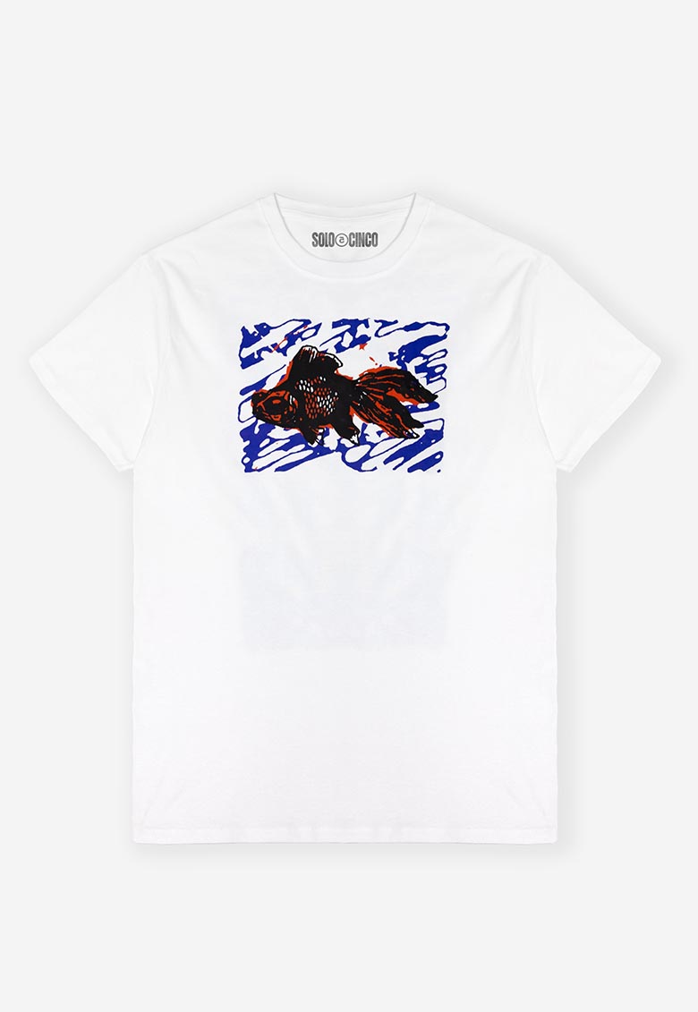Fluye como pez en el agua y añade color a tus looks sin tener que renunciar a la sencillez. La “Street fishes tee white”, hecha 100% de algodón que garantiza una comodidad y suavidad absolutas, con un dibujo frontal centrado rectangular de un golfish naranja rodeado de pinceladas azul marino intenso, en la espalda se despliega una ilustración que mezcla el estampado DTF con la pintura en spray.